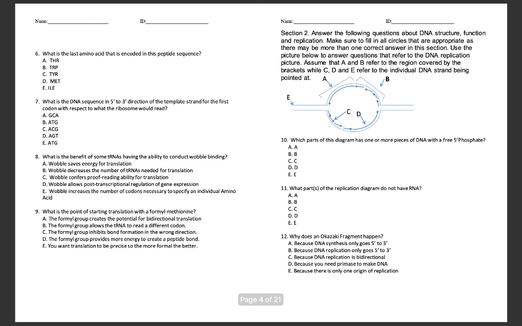 Solved Name Id Name Id 6 What Is The Last Amino Acid Chegg Com